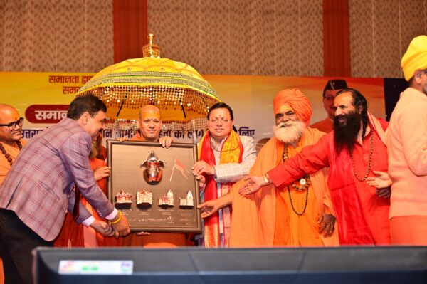 - संतो के कुंभ में यूसीसी लागू करने पर मुख्यमंत्री का हुआ सम्मान।