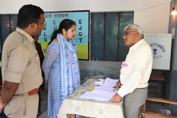 टिहरी । जिला मजिस्ट्रेट/जिला निर्वाचन अधिकारी (प.) टिहरी गढ़वाल नितिका खण्डेलवाल ने गुरूवार को जनपद टिहरी के विकासखण्ड जाखणीधार क्षेत्रान्तर्गत के विभिन्न मतदान केन्द्रों का स्थलीय निरीक्षण कर मतदान प्रक्रिया व्यवस्थाओं का जायजा लिया। निरीक्षण के दौरान उन्होंने बूथ नंबर 109 प्रा.वि. उठड़ मतदान केन्द्र, बूथ नंबर 97 रा.प्रा.वि. बड़कोट, बूथ संख्या 111 रा.प्रा.वि. छोल गांव, बूथ संख्या 101 रा.प्रा.वि. नंदगांव, बूथ संख्या 114 रा.प्रा.वि. नंदगांव के मतदान केन्द्रों में मतदान प्रक्रिया व्यवस्थाओं को देखा। इस दौरान मतदान प्रक्रिया शांतिपूर्ण संचालित होना पाई गई। इस अवसर पर एसएसपी आयुष अग्रवाल सहित अन्य संबंधित अधिकारी उपस्थित रहे।