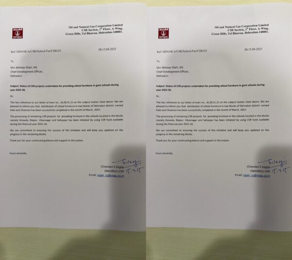 - ब्लॉक कालसी व चकराता के स्कूल हुए सीएसआर फर्नीचरयुक्त; अब डोईवाला, रायपुर, विकासनगर व सहसपुर के स्कूलों की है बारी