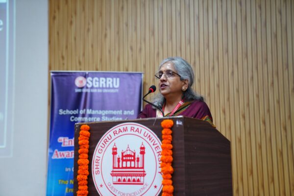 देहरादून। स्कूल ऑफ मैनेजमेंट एंड कॉमर्स स्टडीज़ ने राष्ट्रीय लघु उद्योग और उद्यमिता विकास संस्थान के सहयोग से उद्यमिता जागरूकता कार्यक्रम का सोमवार को सफलतापूर्वक आयोजन किया। इस कार्यक्रम का उद्देश्य छात्रों को उद्यमिता पारिस्थितिकी तंत्र और भारत में उभरते उद्यमियों के लिए उपलब्ध अवसरों के बारे में प्रेरित करना और शिक्षित करना था।