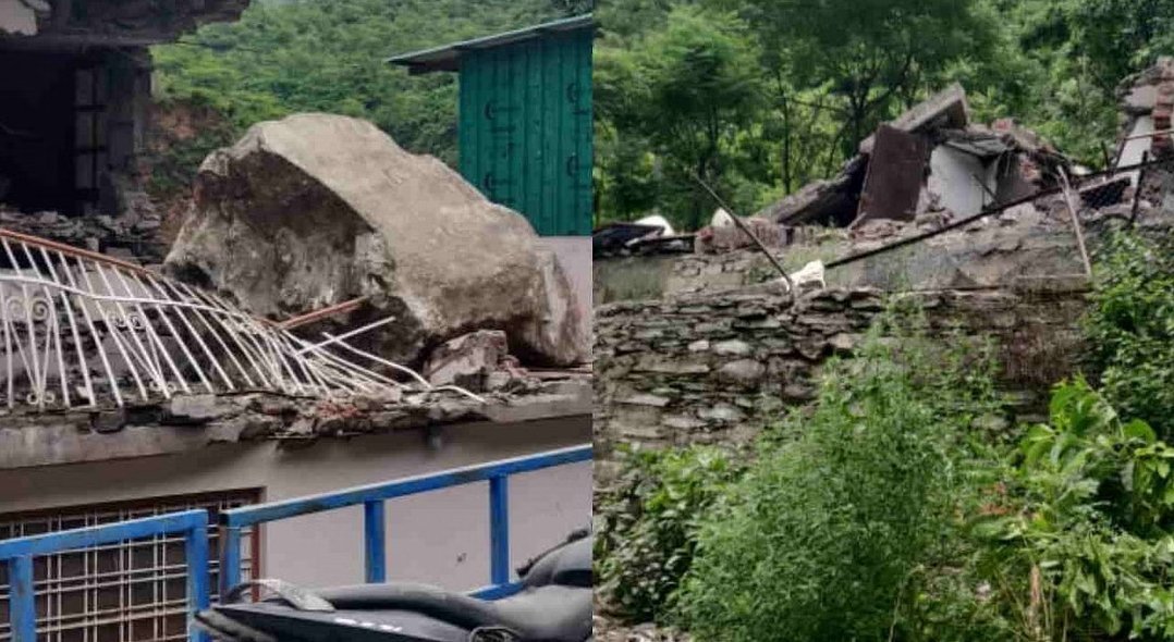 देवप्रयाग। देवप्रयाग नगर के बहा बाजार क्षेत्र में अचानक नृसिंहगाचल पर्वत का एक हिस्सा दरक गया। देखते ही देखते कई टन वजनी चट्टानें तेजी से लुढ़कती हुई नीचे बाजार में आ गिरीं, जिससे भारी तबाही मच गई। इस भूस्खलन में एक व्यक्ति घायल हो गया जबकि तीन मकान पूरी तरह क्षतिग्रस्त हो गए। गनीमत यह रही कि घटना के समय अधिकांश लोग अपने घरों से बाहर थे, जिससे एक बड़ा जानमाल का नुकसान टल गया।