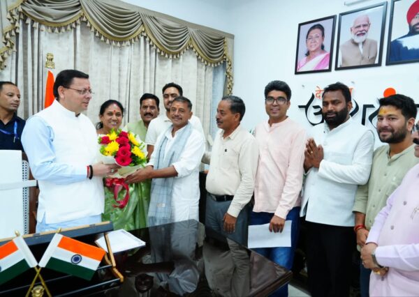 सीएम धामी से केदारनाथ विधायक आशा नौटियाल के नेतृत्व में रुद्रप्रयाग जिले से त्रिस्तरीय पंचायत चुनावों में जीत दर्ज करने वाले नवनिर्वाचित जिला पंचायत सदस्यों ने की भेंट