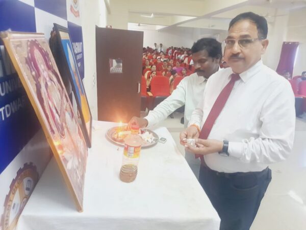 कोटद्वार : भाबर स्थित भगवंत ग्लोबल विश्वविद्यालय में आज शिक्षक दिवस धूमधाम से मनाया गया। कार्यक्रम का शुभारंभ प्रतिकुलपति प्रो. पीएस राणा द्वारा डॉ. राधाकृष्णन के चित्र के सम्मुख दीप प्रज्वलित कर किया गया। प्रो. राणा ने इस अवसर पर बोलते हुए सर्वप्रथम उन्हें याद किया व उनके जीवन दर्शन पर प्रकाश डाला। उन्होंने कहा कि वह एक दार्शनिक, शिक्षाविद्, राजनीतिज्ञ, शिक्षक व प्रशासक होते हुए भी शिक्षक कहलाने में गौरव करते थे जोकि उन लोगों के लिए प्रेरणास्वरूप है जो शिक्षक होते हुए भी अपने व्यवसाय से प्यार नहीं करते।