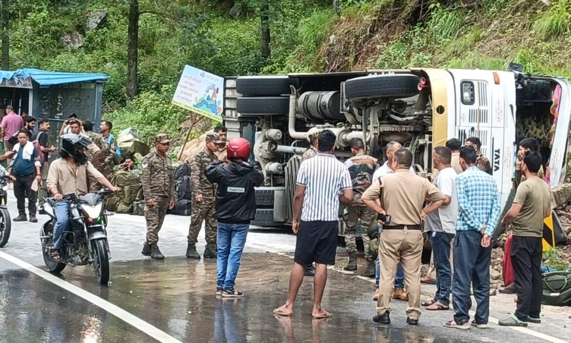 वर्चुअल थाना गोपेश्वर से मिली जानकारी के अनुसार हिमगिरी बस सेवा का वाहन संख्या यूके 14 पीए 3033 बुधवार को जोशीमठ से 31 सेना के जवानों को लेकर रायवाला (ऋषिकेश) जा रहा था कि अचानक बदरीनाथ हाइवे पर सोनला के पास अनियंत्रित होकर सड़क पर पलट गया। इसमें सेना के छह जवान तथा परिचालक गंभीर घायल हो गए है। घटना की सूचना मिलने पर मौके पर पहुंची पुलिस ने घायलों को 108 सेवा के माध्यम से रेस्क्यू कर कर्णप्रयाग उप जिला चिकित्सालय पहुंचाया। पुलिस ने बताया कि वाहन में अन्य जवान सामान्य रूप से घायल है। उनका भी उपचार किया जा रहा है।