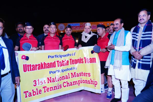 देहरादून : मुख्यमंत्री पुष्कर सिंह धामी से शनिवार को सांय परेड ग्राउंड में 17 से 23 फरवरी, 2025 तक इंदौर में आयोजित 31वें नेशनल मास्टर टेबल टेनिस चौम्पियनशिप में प्रतिभाग करने वाले प्रतिभागी खिलाड़ियों ने भेंट की। मुख्यमंत्री ने टीम के सदस्यों को भविष्य के आयोजनों में प्रतिभाग करने के लिये शुभकामनाएं दी। इस अवसर पर केन्द्रीय राज्य मंत्री अजय टम्टा मेयर सौरभ थपलियाल, प्रतिभागी खिलाडी देवेन्द्र काण्डपाल, संजय काण्डपाल, भूपेन्द्र उप्रेती तथा बी.एस नेगी आदि उपस्थित थे।