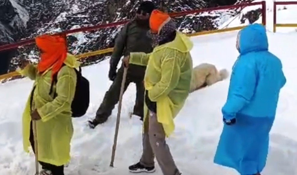 तीर्थ यात्रियों की बर्फीले रास्ते में मददगार बनी पुलिस