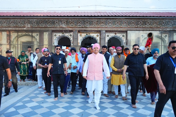 देहरादून। पंजाब के विभिन्न हिस्सों से 150 सदस्यीय पैदल संगत का जत्था बुधवार शाम को श्री दरबार साहिब पहुंचा। शाम 5ः30 बजे श्री दरबार साहिब देहरादून के दर्शनी गेट पहुंचते ही पैदल संगत का पुष्प वर्षा व ढोल नगाड़ों की थाप के साथ दूनवासियों व दरबार श्री गुरु राम राय जी महाराज, प्रबन्ध समिति एवं श्री झंडा जी मेला आयोजन समिति ने जोरदार स्वागत किया। दर्शनी गेट व श्री दरबार साहिब परिसर में श्री दरबार साहिब के सज्जादानशीन श्रीमहंत देवेन्द्र दास जी महाराज की अगुवाई में पुष्प वर्षा के बीच संगत का जोरदार स्वागत हुआ। श्री महाराज जी ने संगत को दर्शन दिए व आशीर्वाद दिया। श्री दरबार साहिब परिसर व निकटवर्ती समूचा क्षेत्र श्री गुरु राम राय जी महाराज के गगनभेदी जयकारों से गूंज उठा।