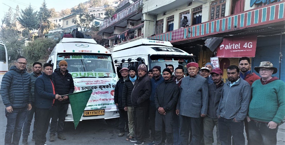 गोपेश्वर (चमोली)। जिलाधिकारी चमोली संदीप तिवारी के निर्देश पर रविवार को मुख्य उद्यान अधिकारी चमोली जेपी तिवारी ने चमोली जिले के वाइब्रेंट विलेज नीती, बांपा, गम्साली, माणा, कैलाशपुर, देवाल के वाण,ज्योतिर्मठ सुनील गांव के 20 सेब उत्पादक कृषकों  के दल हिमाचल के लिए रवाना हुआ। यह दल यहां जाकर सेब उत्पादन की उच्च तकनीकी का प्रशिक्षण लेंगे।