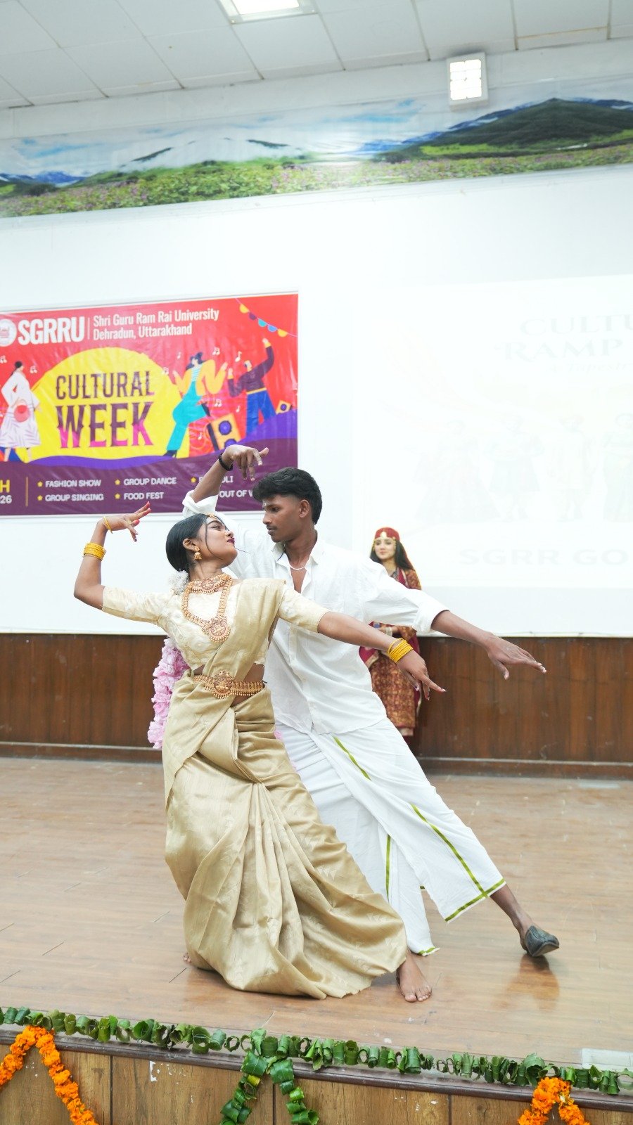 देहरादून। श्री गुरु राम राय विश्वविद्यालय में सांस्कृतिक उल्लास, रचनात्मकता और छात्र ऊर्जा का अद्भुत संगम देखने को मिला। बुधवार को विश्वविद्यालय परिसर में सांस्कृतिक सप्ताह का भव्य शुभारंभ हुआ। 4 फरवरी से 7 फरवरी तक चलने वाले इस आयोजन में छात्र-छात्राओं ने बढ़-चढ़कर भागीदारी करते हुए अपनी सांस्कृतिक, कलात्मक और रचनात्मक प्रतिभाओं का शानदार प्रदर्शन किया।