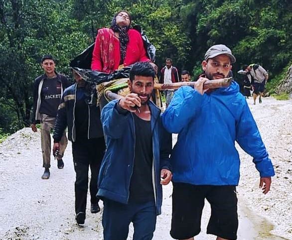 एक ओर जहां ग्रामीण क्षेत्रों की स्वास्थ्य सुविधा इतनी बदहाल बनी हुई है कि सब भगवान भरोसे चल रहा है वहीं उपर से प्रकृति का प्रकोप इतना भारी है कि लगातार हो रही बारिश से सड़कें जहां-तहां बंद पड़ी है। ऐसे हालातों में यदि ग्रामीण क्षेत्रों में कोई बीमार पड़ जाए तो परिजनों पर क्या गुजरती होगी इसका अंदाजा लगाया जाना मुश्किल भरा है। ऐसे हालात मंगलवार को देखने को मिले जब ईराणी की 32 वर्षीय रामेश्वरी देवी पत्नी राजेंद्र सिंह की अचानक तबीयत खराब हो गई। गांव में समुचित स्वास्थ्य सुविधा न होने और सड़क मार्ग अवरूद्ध होने से ग्रामीणों ने उसे डंडी के सहारे 12 किमी पैदल चलकर मुख्य सड़क तक लाए जहां से उसे अस्पताल पहुंचाया गया। पूर्व प्रधान मोहन नेगी ने कहा कि भारी बारिश के चलते सड़क मार्ग अवरूद्ध होने के कारण बीमार को डंडी के सहारे ग्रामीणों ने मुख्य सड़क मार्ग तक पहुंचाया जहां से उसे उपचार के लिए जिला चिकित्सालय में  भर्ती किया गया है।