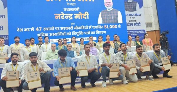 देहरादून : देहरादून के सर्वे ऑफ इंडिया ऑडिटोरियम में राजस्व विभाग, सीबीआईसी द्वारा शनिवार को ‘रोजगार मेले’ के 15वें चरण का आयोजन किया गया। प्रधानमंत्री नरेंद्र मोदी ने वीडियो कॉन्फ्रेंसिंग के माध्यम से आयोजन को संबोधित किया और देश भर के 47 स्थानों पर 51,000 से अधिक चयनित उम्मीदवारों को नियुक्ति पत्र सौंपे।