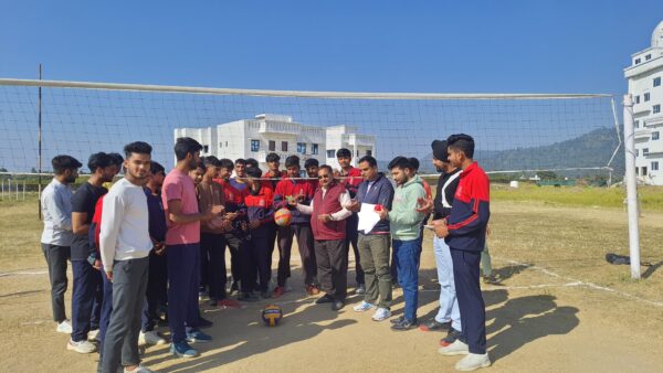 कोटद्वार : भाबर स्थित भगवंत ग्लोबल विश्वविद्यालय में आज वालीबाल प्रतियोगिता का आयोजन किया गया। प्रतियोगिता का शुभारंभ प्रतिकुलपति प्रो. पीएस राणा द्वारा रिब्बन काटकर किया गया। प्रतियोगिता में प्रबन्ध, कम्प्यूटर व नर्सिंग विभागों की टीम ने भाग लिया। प्रबन्धन विभाग की टीम विजेता व बीसीए प्रथम विभाग की टीम उपविजेता रही। इस अवसर पर विश्वविद्यालय के प्रति- कुलपति प्रो. राणा ने अपने उद्बोधन में कहा कि प्रतियोगिता का उद्देश्य जहां शारीरिक विकास है वहीं संघर्ष,मेहनत, खेल भावना व सामाजिकता का विकास भी है। उन्होंने कहा कि विजेता व उपविजेता टीम को प्रमाणपत्र भी दिया जाएगा। क्रीडा अधिकारी व समन्वयक मुकेश अधिकारी व अम्पायर गुरजंट सिंह ने प्रतियोगिता के सफल संचालन में अहम भूमिका निभाई। इस अवसर पर फार्मेसी प्राचार्य डॉ. के. सर्वानन, सहा. कुलसचिव अरुण कुमार व शिक्षक, कर्मचारी व छात्र -छात्राएं सम्मिलित हुए। विश्वविद्यालय के चेयरमैन डॉ. अनिल सिंह, चेयरपर्सन डॉ. आशा सिंह, डॉ. विभांशु विक्रम सिंह ने प्रतियोगिता में सम्मिलित व सफल प्रतिभागियों को बधाई दी।